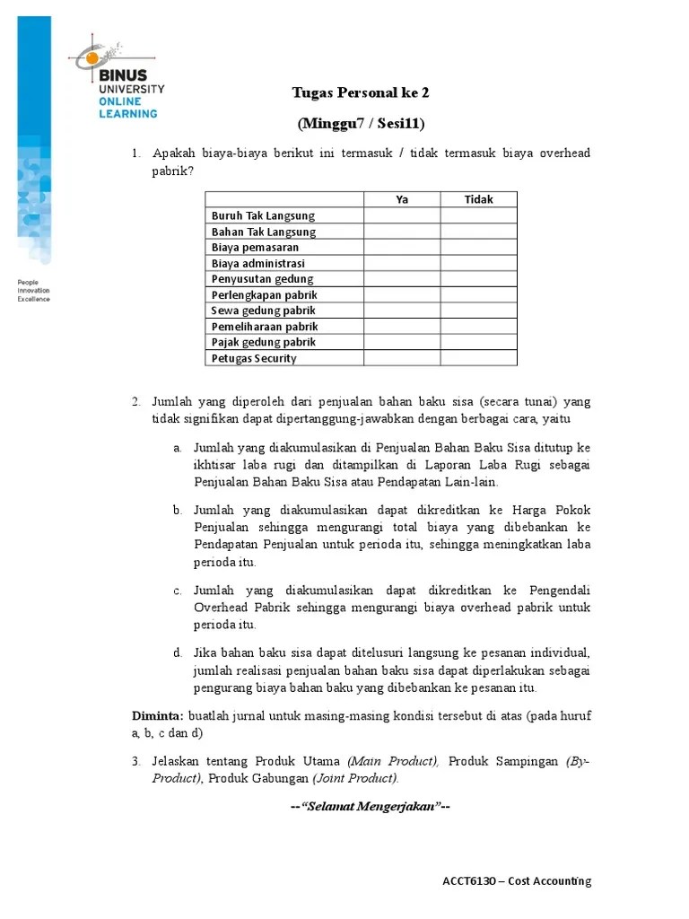 Biaya overhead pabrik yang termasuk dalam kelompok ini antara lain adalah biaya reparasi yang diserahkan kepada pihak luar perusahaan, biaya listrik pln … Dengan demikian, biaya overhead diklasifikasikan menjadi bahan tidak langsung, tenaga kerja tidak langsung, dan overhead tidak langsung. Hal ini meliputi biaya perlengkapan operasional dan jasa yang digunakan oleh … 01.09.2021 · biaya overhead juga dapat diartikan sebagai agregat dari ketiga biaya tadi termasuk jasa yang tidak dapat dibebankan langsung ke unit biaya tertentu. 18.11.2021 · biaya overhead pabrik yang termasuk dalam kelompok ini antara lain adalah biaya reparasi yang diserahkan kepada pihak luar perusahaan, biaya listrik pln … 17.07.2021 · biaya variabel adalah istilah akuntansi yang digunakan saat menghitung biaya produksi perusahaan, selain biaya tetap.